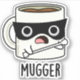 Mugger Funny Mug Puns verfügt über eine niedliche Tasse, die eine Maske trägt und einen Rührer hält! Perfektes Geschenk für Familie und Freunde, die Liebe niedliche Tasse Schüsse.