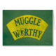 FANTASTISCHE KÄSTE UND WO SIE FINDEN SIE™ | Dies ist eine stilisierte Grafik der MUGGLE WORTHY™ Einstellung auf der Aktentasche von NEWT SCAMANDER™, in der auch eine entakelte Kreatur gezeigt wird, die durch das Schlüsselloch entkommt, das für das "O" in "Worthy" verwendet wird.