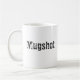 Diese Tasse got Schuss und hat jetzt ein Einschussloch in ihr