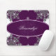 Mit diesem modernen Mousepad-Design mit einem maulbeeren und elfenbeinigen Hintergrund mit elegantem Damast-Muster und Emblem fügen Sie Ihrem Zuhause-Büro oder Arbeitsplatz eine elegante Touch hinzu. Mit dem anpassbaren Text können Sie Schriftart ändern, Textfarben und -größen nach Ihren Wünschen ändern. Personalisieren Sie sich selbst oder machen Sie ein großartiges Geschenk.