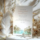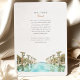 Das atemberaubende Aquarellfest lädt Sie zu einem unvergesslichen exotischen Fest ein. Freuen Sie sich auf den Oasis Pool im Mulia, Mulia Resort & Villas Nusa Dua, Bali. Das Kunstwerk besticht durch seinen ruhigen Überlaufpool, der von eleganten, lebensgroßen balinesischen Frauenstatuen in hellen Stein-/Beige-Tönen gesäumt wird. Das türkisfarbene und kristallklare Wasser des Pools reicht bis zum Horizont des Ozeans. Die sanfte, traumhafte Aquarelllandschaft wird von üppigem tropischem Blattwerk in verschiedenen Grüntönen gerahmt, darunter Palmenfronten und andere exotische Pflanze, mit klassischen balinesischen Pavillons in Creme und Beige mit terrakotta-Deckendetails im Hintergrund. Diese Einladung verströmt Luxus und Ruhe, perfekt für eine glamouröse Hochzeit in Urlaubsort auf Bali oder für Paare, die ein exotisches, ruhiges und opulentes Thema suchen. Die Vorderseite präsentiert elegant Ihre Hochzeitsdetails, während die Rückseite "The Finer Details" für Gästeinformationen anbietet.