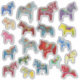 Diese Dala Pferde wurden von Julia Morrill entworfen. Manche waren Zeichnungen und Gemälde, während andere auf geschnitzten Holzpferden gefertigt wurden, die sie herstellte. Viele sind auf roten Pferden, einige auf gelb, blau, rosa, grün und lila. Das ist die breiteste Auswahl an Farben und Stilen auf einem Single-Aufkleber, die wir je gesehen haben.