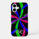 Personalize this iPhone 16 case which features a custom multi color figure 8 geometric design. This case includes additional phone model change options.
