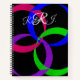 This colorful spiral notebook features a geometric interchange pattern of overlapping 3D circles fused by a center 2D design. This product can be personalized to your preference with custom text.