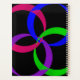 This spiral planner features a multi color circular interchange geometric pattern theme. Customize the front cover text to your pleasure. Spiral color options include gold, black and white.