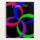 This spiral planner features a multi color circular interchange geometric pattern theme. Customize the front cover text to your pleasure. Spiral color options include gold, black and white.