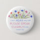 Help make people aware that you can't hear clearly with this pretty button badge. This "hard of hearing" badge with multi colored wildflowers is elegant but still conveys the message of your hearing impairment. A great gift or stocking filler for a deaf person. The watercolor illustration is unique to The Stationery Concierge.