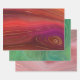Diese individuell gestalteten Bogen, die in der Natur inspiriert sind, haben drei verschiedene, lebendige Marmorplatten. Eine hat die tiefen Rot-, Orangen- und Purpurfarben eines Sonnenaufgangs; eine hat reiche grüne und aquamarine Wirbel und eine hat eine Mischung aus Licht und dunklen Rose. Goldene Farbbänder durchlaufen jedes Design im Freiform-Stil. Diese vielseitigen Verpackungspapierblätter können das ganze Jahr über für jede Geschenkveranstaltung verwendet werden.