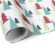 Geben Sie Geschenke in diesem Jahr in fröhlich verpackt. Dieses Geschenkpapier-Design ist ein Muster, das mit roten, grünen, blauen und dunkelgrünen Bäumen erstellt wurde. Jeder Baum hat Textur für die Tiefe hinzugefügt. Das Muster ist Set vor einem sehr hellgrauen Hintergrund.