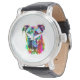 Uhr, Vintage Männeruhr mit schwarzem Lederarmband