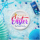 Multicolor Happy Oster - Regenbogenfarbe glückliche Osterschrift mit sonnigen Ohren und weißem Hintergrund