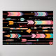 Multicolor Arrow Muster Kunstillustrierung. Random, skurrile Pfeile in horizontalen Linien. Natives, Stammes-Bogendesign Motiv zur Anpassung.