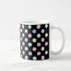 Verfügt über ein lustiges Muster von mehrfarbigen Flecken auf schwarzem Hintergrund.
