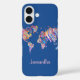 Multicolor-Weltkarte - mehrfarbige abstrakte Weltkarte, blauer Hintergrund, Flugzeug mit Zielhaltestelle