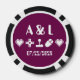 Geben Sie den Gästen, Hochzeitsjungfrauen, Trauzeugen oder jedem anderen, der Ihre Hochzeit oder besondere Veranstaltung besucht oder dabei hilft, eine lustige Leckerei mit diesen individuellen Poker Chips. Auf einer Seite des Poker-Chips befindet sich ein weißes, direktionales Pad oder D-Pad auf einem reichen Weinhintergrund. Auf der anderen Seite gibt es ein Beispiel-Set von Initialen und Datums, getrennt durch ein Muster von Videospielsymbolen, darunter ein D-Pad, ein 8-Bit-Herz, Joystick und Computermaus. Der Sample-Text kann mit Ihren eigenen Daten oder einer speziellen Nachricht Ihrer Wahl angepasst werden, um ein einzigartiges und persönliches Token zum Gedenken an Ihren großen Tag zu erstellen. Dieses Design passt zu jedem Produkt aus dem Multiplayer-Modus in der Weinlinie, sodass Sie Ihre Spiele-thematische Hochzeit oder besondere Veranstaltung so koordiniert wie Sie möchten.