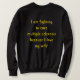 Ich bin stolz, dies während einer kürzlich abgehaltenen Spendenveranstaltung gemacht und getragen zu haben. Sweatshirt für Ehemänner, die ihre Unterstützung, Liebe und Fürsorge für ihre Ehefrauen zeigen. Sensibilisierung und Kampagnen zur Finanzierung der Behandlung der Multiplen Sklerose (MS). Zurück liest sich: Ich kämpfe um Multipler Sklerose zu heilen, weil ich meine Ehefrau Liebe!