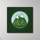 Une image cool graphique de vélo avec une montagne alpine derrière et les mots "aventures à vélo" - une bonne idée de déco intérieure pour les amateurs de vélo - la couleur verte de l'arrière - plan peut facilement être changée ("customisez-la")