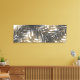 Peinture murale en toile illustrée d'une empreinte feuille tropicale dans des teintes sépia. Customisez cet objet ou achetez tel quel. Taille de 36 po x 12 po indiquée.
