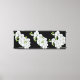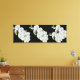 L'art de la toile enveloppée est représenté avec une empreinte graphique de jolies orchidées blanches sur une couleur arrière - plan noire. Customisez cet objet ou achetez tel quel. Image stock