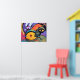 Graffiti rose, jaune, violet, noir, blanc, gris, bleu, yeux muraux poster message Paix et amour