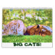 Calendrier de douze mois comportant des photographies de grands chats.