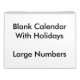 Mural Vacances Calendrier Vide Avec Grand Nombre