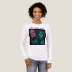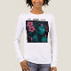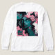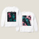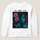 Composición más expresiva y abstracta: rostro femenino con contrastes bicolor, trazos fluidos, manchas y líneas que generan movimiento y profundidad. La flor central actúa como sello botánico de la colección, manteniendo la estética neon teal & pink para una línea uniforme en cojines, sudaderas y pósters.