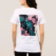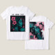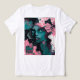 Composición más expresiva y abstracta: rostro femenino con contrastes bicolor, trazos fluidos, manchas y líneas que generan movimiento y profundidad. La flor central actúa como sello botánico de la colección, manteniendo la estética neon teal & pink para una línea uniforme en cojines, sudaderas y pósters.