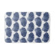 Badematte in einem Blockdruckmuster, basierend auf einer Jakobsmuschel-Muschel, in dunkelblau / indigoblau auf weißem Hintergrund