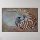Ein originelles Werk von Aileen Rolfe in Braun, Orange, Weiß und Schwarz einer nautilus Muschel, die auf der Seite liegt, mit sichtbaren Zebrastreifen.