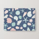 verschiedene Arten von handgemalten Muscheln auf blauem Hintergrund