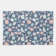 verschiedene Arten von handgemalten Muscheln auf blauem Hintergrund