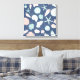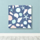 verschiedene Arten von handgemalten Muscheln auf blauem Hintergrund