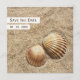 Mit dieser Ankündigung Datum freihalten Einladung kündigen Sie Ihre Hochzeit oder Hochzeit am Strand an, mit einem romantischen Konzept mit einer Muscheln im Sand. Personalisieren Sie es mit Ihren eigenen Informationen oder passen Sie es weiter an, wenn Sie das Layout oder die Einladungsgröße ändern möchten.