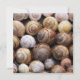 Dieses Design zeigt ein Bild von Muscheln, die in Zeilen und Spalten angeordnet sind. Die besondere Art der Schnecke, die diese Muscheln verschüttet, ist das "Arianta arbustorum", das manchmal auch auf Englisch als "Schnürsenkel" bezeichnet wird. Die Muscheln sind in hellen und dunkelbraunen Tönen gehalten.