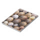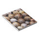 Dieses Design zeigt ein Bild von Muscheln, die in Zeilen und Spalten angeordnet sind. Die besondere Art der Schnecke, die diese Muscheln verschüttet, ist das "Arianta arbustorum", das manchmal auch auf Englisch als "Schnürsenkel" bezeichnet wird. Die Muscheln sind in hellen und dunkelbraunen Tönen gehalten.