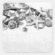 Schwarz-Weiß-Muscheln & Seesterne am Strand.