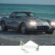Muscle Car on the Beach Découpage Paper: Klassische Muskelwagen treffen auf Sonne, Sand und surfen in diesem Retro Stranddesign - perfekt für Heimwerker und Dekor.