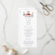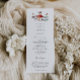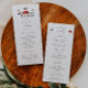 Rustikales Hochzeitsprogramm mit Aquarellbildern für Pilze und Motten. Informationen zur Hochzeitszeremonie und die Namen der Hochzeitsfeier sind auf diesem Programm aufgeführt.