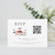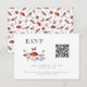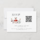 Rustikale Hochzeitskarte RSVP mit Aquarellbildern von Pilzen und Motten. Es gibt auch einen QR-Code. Ideal für eine Hochzeit im Herbst.