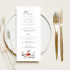 Rustikale Karte für Hochzeitsessen mit Aquarellbildern von Pilzen und Motten.