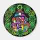 Ein Magnet mit bunten psychedelischen Pilzen, umgeben von grünen Pisley und grünen Mandalasen.