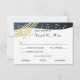 Musik in der Air Bar Mitzvah Antwortkarte in Blau und Gold. Die hellere Version unseres Originals. Passen Sie Ihren Text nach Bedarf an.
