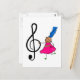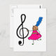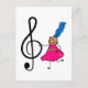 Niedlicher Cartoon skurrile Illustration eines glücklichen kleinen Strichmännchen Mädchen, das ein riesiges Musikkleckssymbol hält. Einfach anpassen und Ihre eigene Hintergrundfarbe auswählen oder Text hinzufügen. Bilder auf verschiedenen Geschenken und Produkten erhältlich.