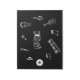 Ein Notizblock mit Musikthema. Die Grafik mit weißer Musik, auf einem schwarzen Cover, zentriert sich um das Wort Musik.