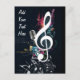 Ein farbenfroher abstrakte einer weißen Spaltnote mit einem silbernen Mikrofon, umgeben von Musiknoten auf schwarzem Hintergrund. Ideal für Sänger, Instrumentenspieler oder jemanden, der Lieben hat, Musik zu hören.