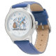 Kinderuhr aus Edelstahl mit blauem Lederarmband