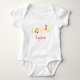 Celebrate your little one’s rhythm from the very beginning with this adorable custom-name baby bodysuit, featuring bright red and yellow musical notes dancing across a golden staff.