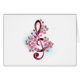 Pink treble clef with delicate, detailed pink Japanese cherry blossoms against white background painted over with light blue paint Blooming pink sakura.