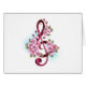 Pink treble clef with delicate, detailed pink Japanese cherry blossoms against white background painted over with light blue paint Blooming pink sakura.